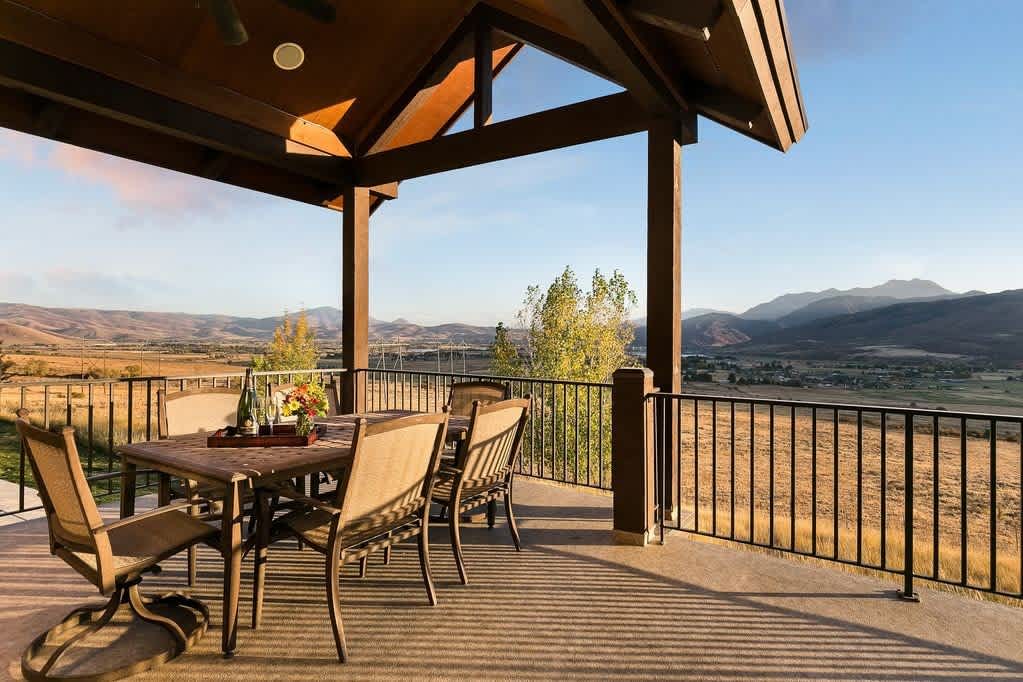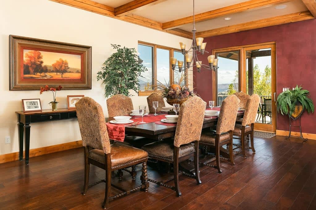 Escape to luxury in this stunning Eden home! Enjoy breathtaking views of Snowbasin Ski Resort and Pineview Reservoir. This custom-designed house features a hot tub, gas fire pit, and a well-equipped kitchen with double ovens and dishwashers. With five king bedrooms, including two with fireplaces, and a downstairs entertainment area with a pool table, this property offers an unforgettable experience. Golf enthusiasts can take advantage of member guest rates at Wolf Creek.